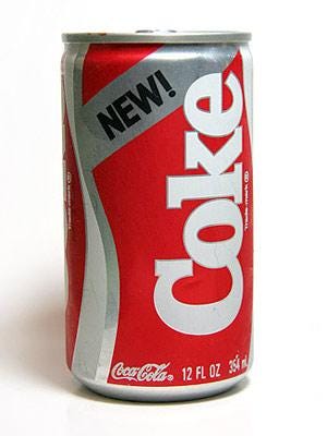 In one of history’s most bone-headed buisness decisions, Coca-Cola changed its formula and released New Coke. The supposed “original formula” was back on the market in less than three months as Coke Classic.