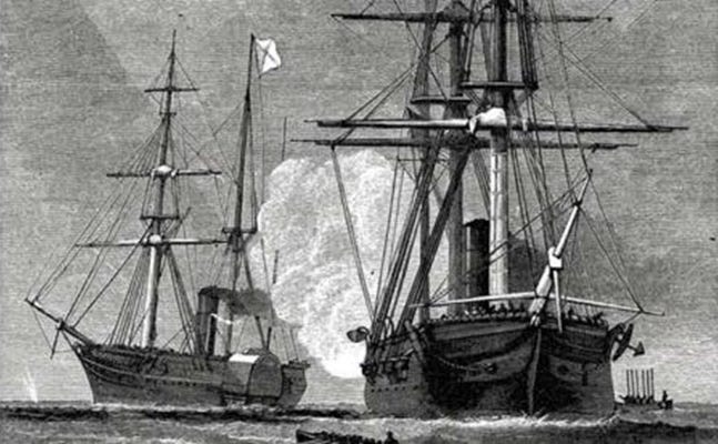 Confederate Commissioners to England, James Mason & John Slidell were seized by the crew of the U.S.S. San Jacinto from the British ship H.M.S. Trent on the high seas in violation of international law.